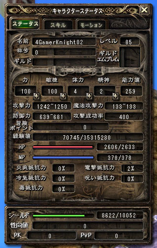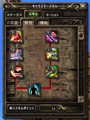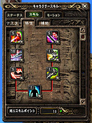 | 直感的に理解しやすいインタフェース。珍しいものではないだけに,操作に戸惑うことはないだろう | ステータスウィンドウ。右側にある「能力値」をステータスに割り振っていく | ナイトのスキルツリー。スキルは本を買って覚える必要があるが,レベルによる制限もある |