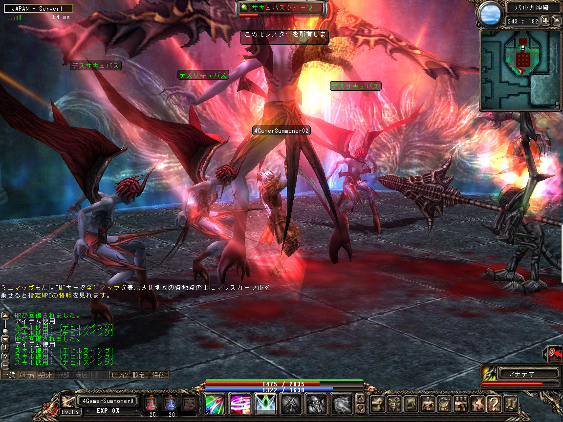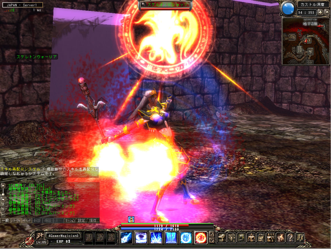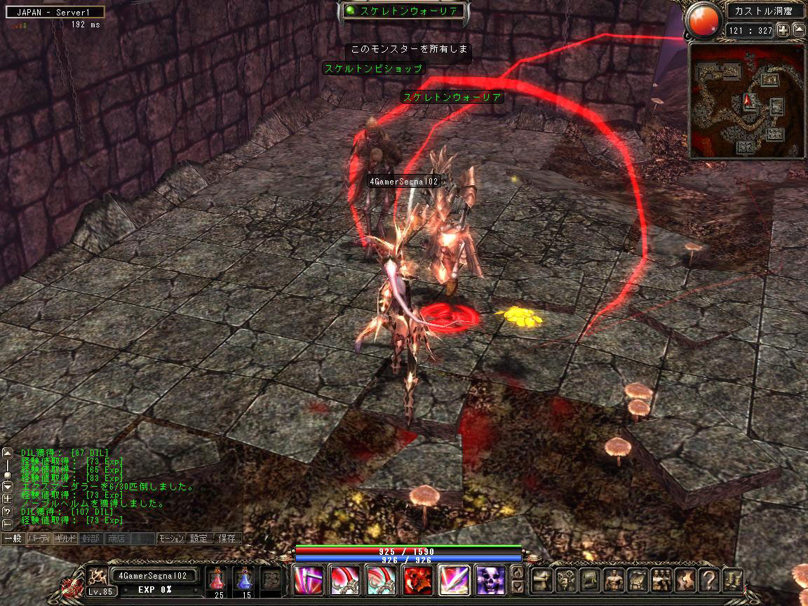 「Aタイプ」ではスキルの使用にショートカット(1〜6キー)を押してから,右クリックで発動タイミングを指定する。「Bタイプ」ではショートカットで即時発動になっている。「Aタイプ」ではモンスターでなく地面を指定してのスキル発動が可能であるものの,ワンテンポ行動が遅れるだけで,あまり意味は見出せない。結局のところ,自動攻撃がシングルクリックかダブルクリックかといった差でしかない。WASDキーによる移動はどちらでも可能であるものの,カメラが追尾しないのでかえって操作しづらいように思える。