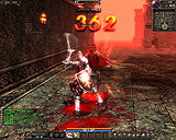 | 各効果は,もちろん敵も使ってくる。敵にガードされるとダメージが黄色で表示され,通常の半分程度しか効かない | ウリの一つであるゴア(残酷)表現。まさに真っ二つ。フィニッシュの仕方によって切断面の方向も変わるようだ |