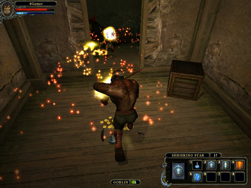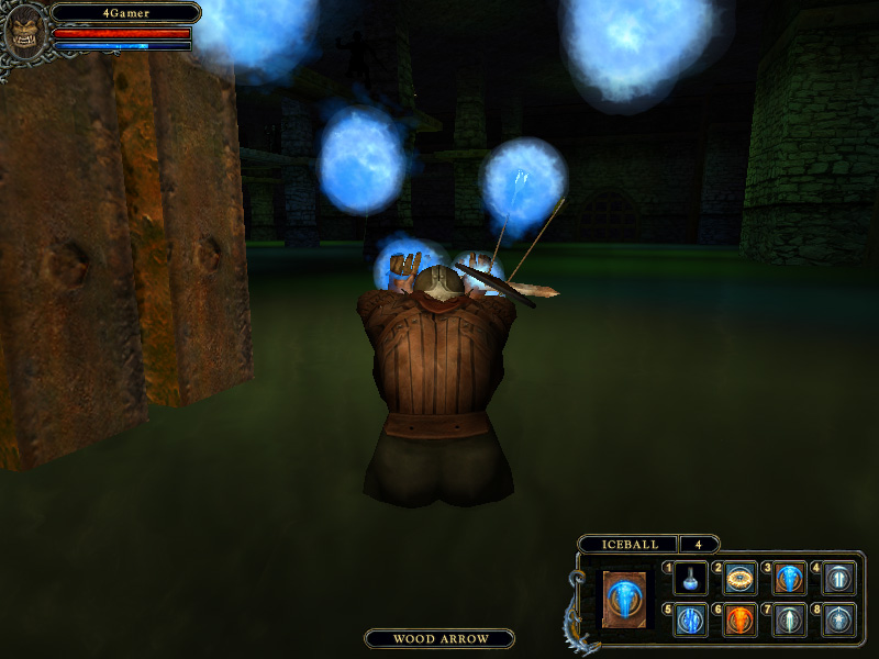 FIGHTERにせよ,MAGEにせよ,スタート直後は非常に弱いので極力肉弾戦は避け,弓や魔法で戦うようにすべきだ。魔法は,武器と同様インベントリから選択できる。この魔法やポーションは,1〜8のナンバーキーにショートカットを割り当てられるので,HEAL POTIONとよく使う魔法は早めに登録しておこう(もたもたしていると,Goblin達にボコにされてしまう)。