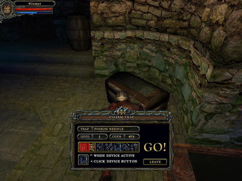 先ほども少し触れたが,この宝箱などの解錠方法が緊張感溢れるものとなっていて,面白い。第6作以降のウィザードリィの鍵の開け方に近いのだが,運の要素が排除され,プレイヤーの腕次第ではキャラクターのスキル値に関係なく解錠できるのだ(もちろん,スキル値が高いほど楽に開けられる)。
