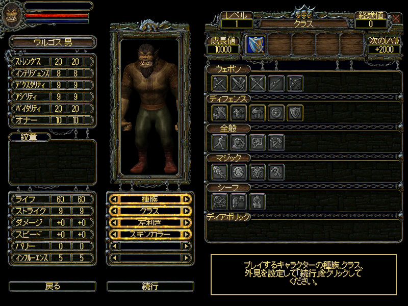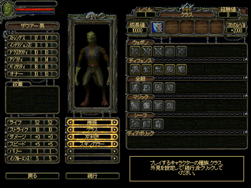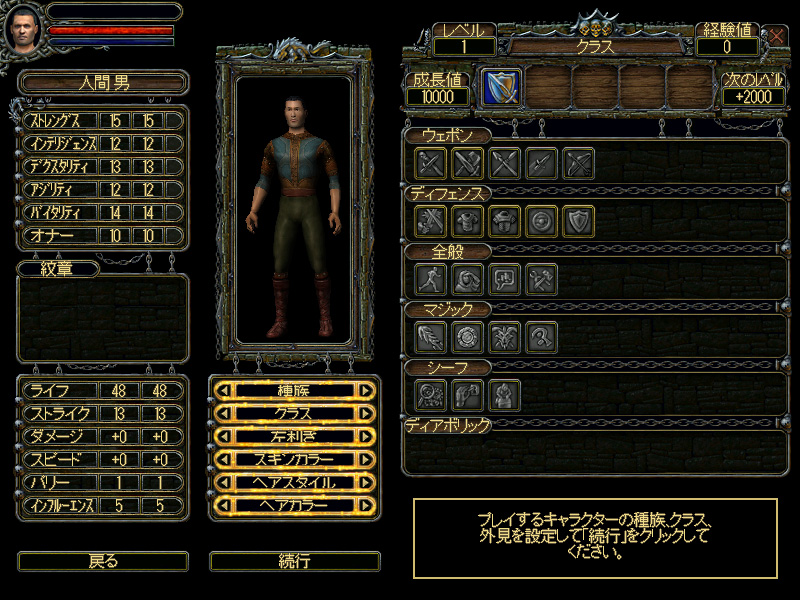 属性は,筋力を表す「ストレングス」や,学習能力を表す「インテリジェンス」など,6種類。インテリジェンスは,高いほどスキル習得に必要な成長値が少なくなるので,どのクラスでも早めに上げたいところだ。また「オナー」というあまり聞き慣れない属性もある。これは英雄度,もしくは勇気を表すパラメータで,上級クラスの中には,このオナーがある程度高くないと転職できないものもある。