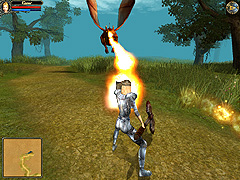 | 道を走っていたら,いきなりドラゴン(ファイヤードレイク)に襲われてびっくり。返り討ちにしてやろうかと思ったが,まったく歯が立たず逃げ出すハメに |