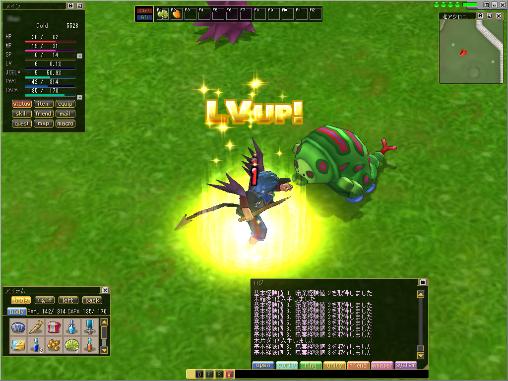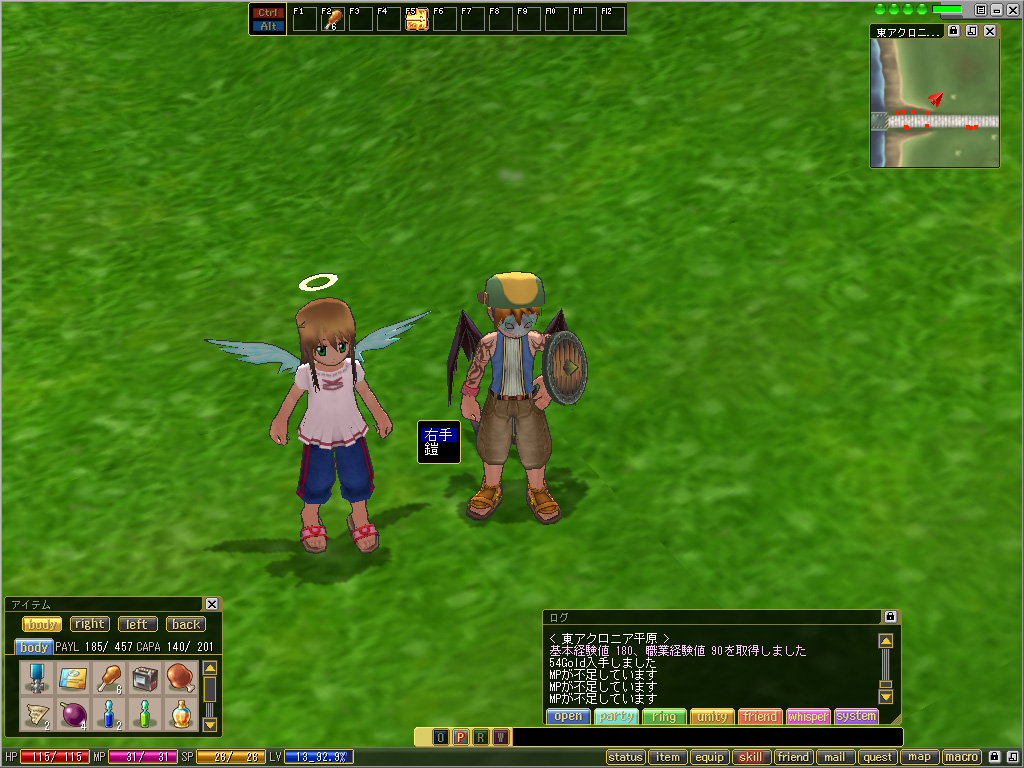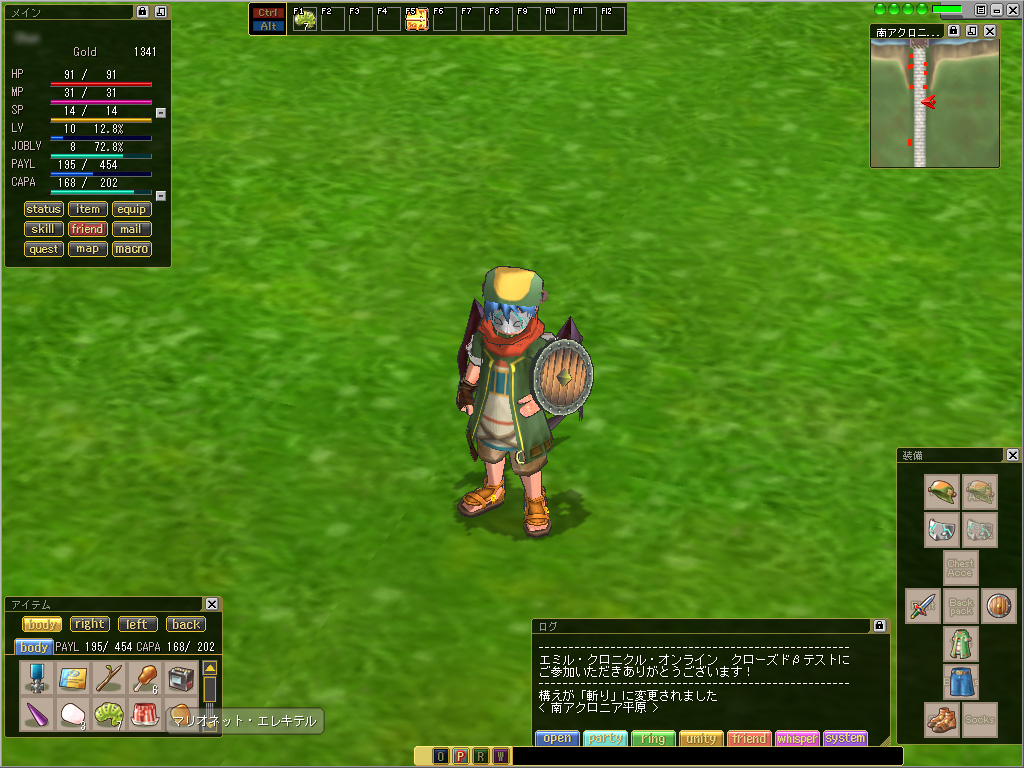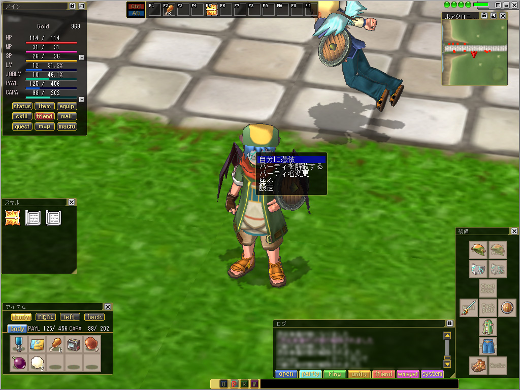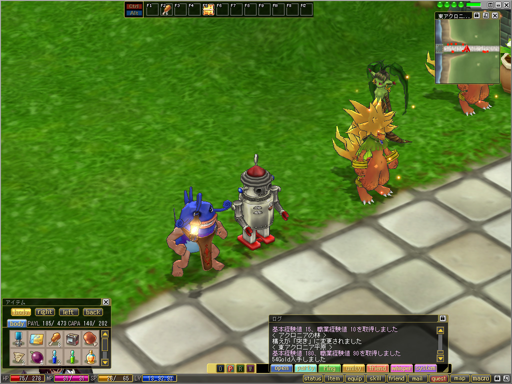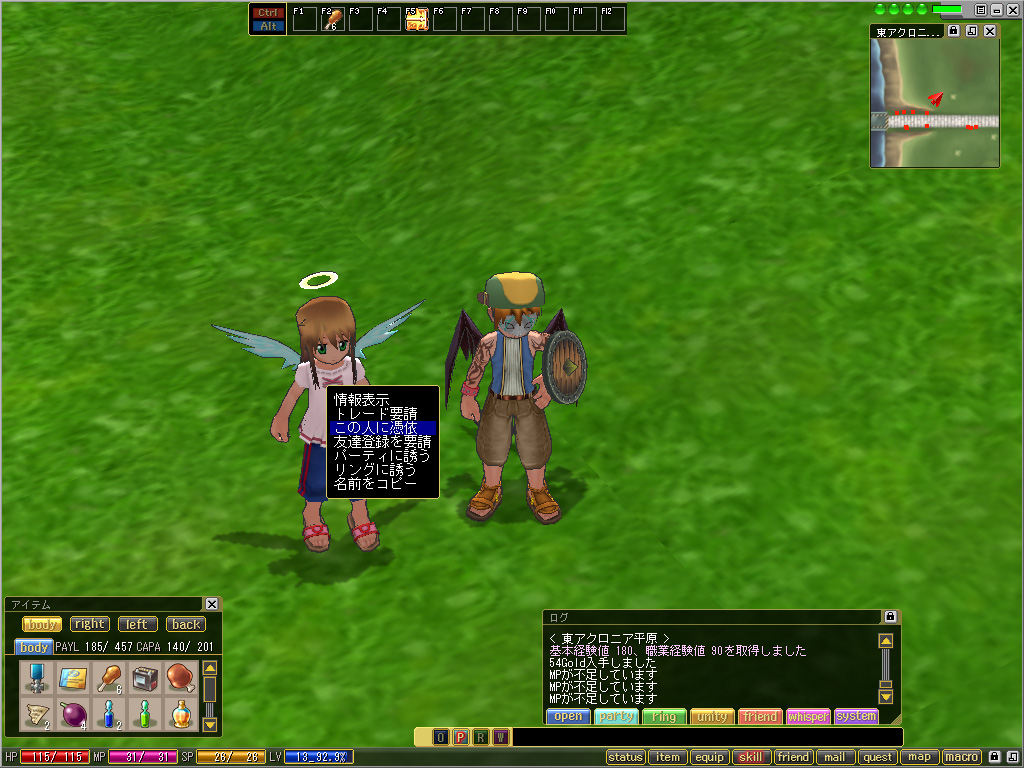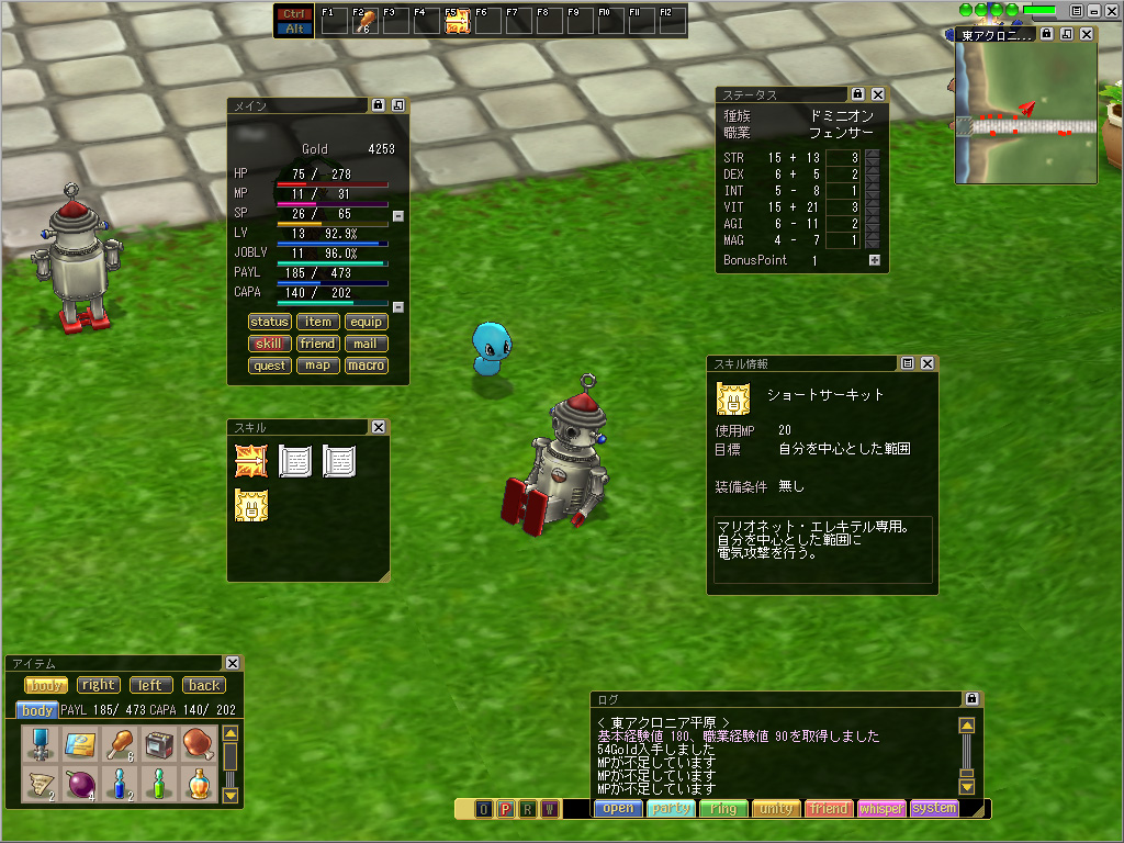 | 現在アイテムとして「マリオネット・xxxxx」(ここではエレキテル)を所持しており,これをダブルクリックすることでマリオネットに憑依できる |
