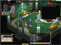 | アップタウンの北部にある塔がギルド元宮。レベル6以上になったらここで職業を決める。1階ロビーから5階まであり,2階から4階までの階層に4人ずつのギルドマスターがいる | ギルドの外に置いてある機械ではスキルを売っている。ジョブレベルで制限されたスキルもあるので,確認して買わなければならない。また,覚えられる数にも注意が必要だ |