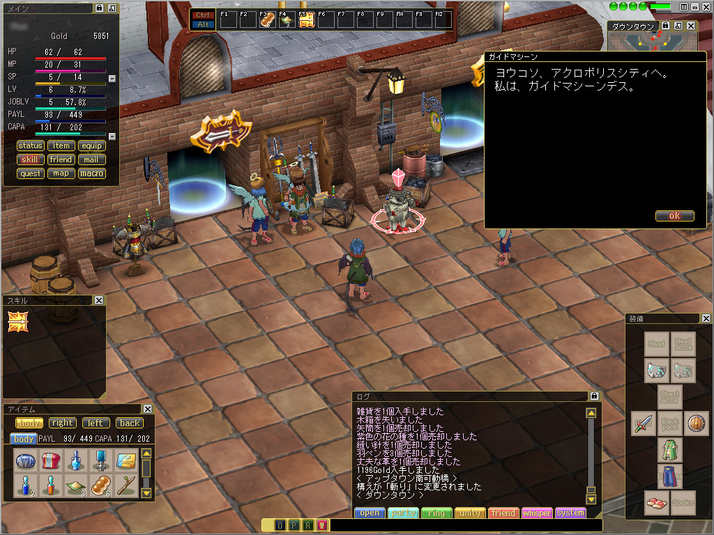 ギルド商人NPCにはお金を預けることもできる。もっとも,今のところお金を大量に持ったまま死んだりしても,とくにペナルティはないようだが。