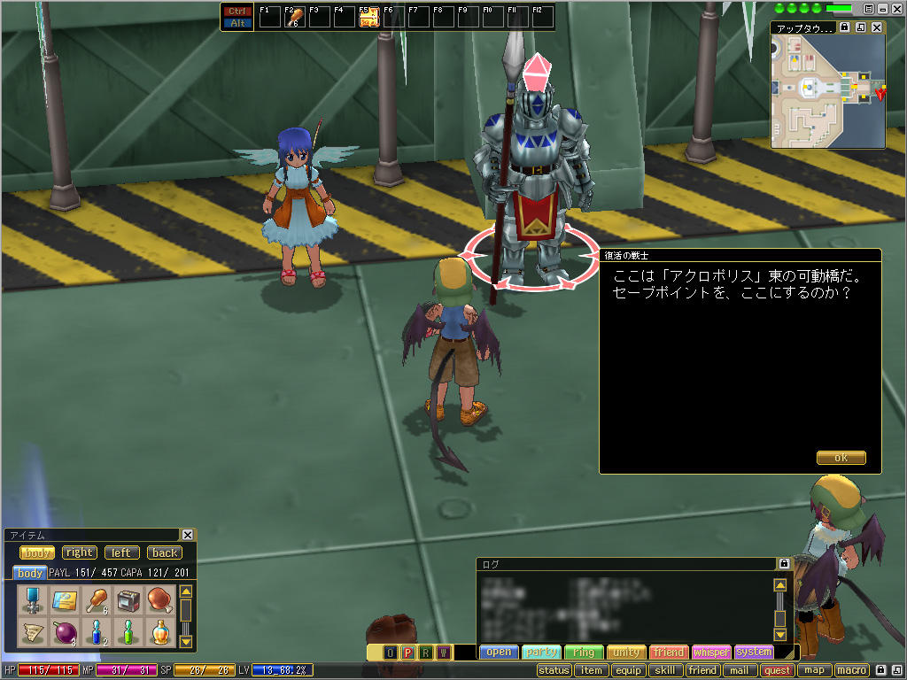 アクロポリスシティの東西南北の出口,そして各街道の先にある村などには「復活の戦士」が立っている。これはキャラクターが死んだときにどこへ戻るようにするか,設定するためのNPCだ。