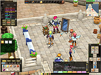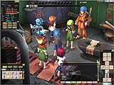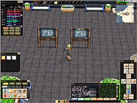 | アップタウンにあるヘアサロン。初めて行くとヘアカラーをくれたりするサービスのよい店だ。お金を払うとキャラクターの髪型を変更してくれる | 掲示板は現在調整中のようだが,情報交換に役立つようになるのかもしれない。アップタウンの東西南北にある階段の近くに立っているもの |