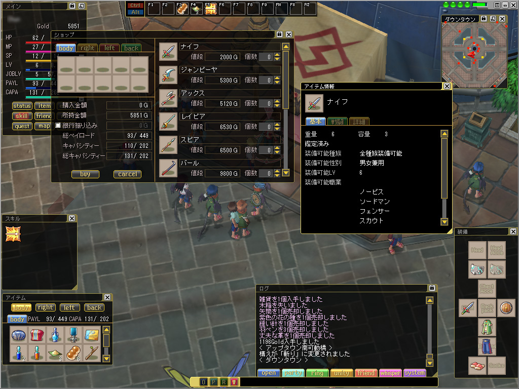 | お店で売っている武器には,装備できる職業やレベル,威力や耐久度,剣や鑓といったカテゴリーなどの情報が表示されている |