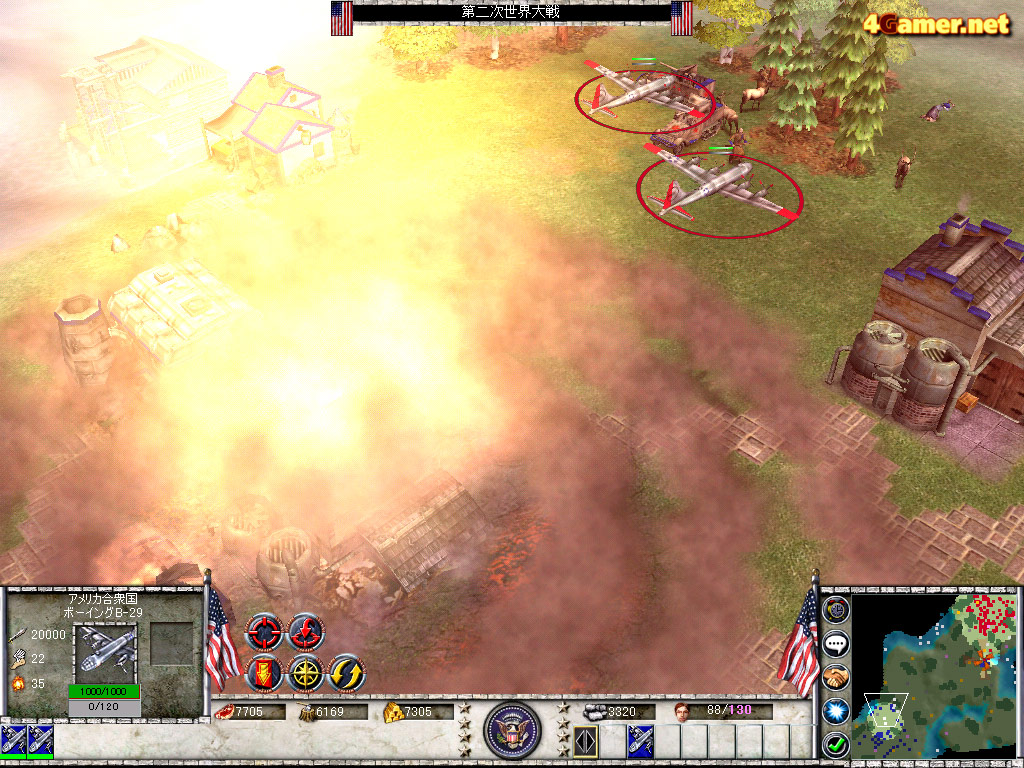本作のシステムもそれに類似しているのだが,国家ごと変わってしまうのでインパクトはかなり強い。登場する国家は,中国,イングランド,朝鮮,フランク王国,フランス,ドイツ,ロシア,大英帝国,アメリカ合衆国の9か国。最初の4国家が使用できる時代は最初の時代〜3番めの時代(中世〜帝国主義時代)までに制限されており,後の5国家は4番めの時代〜最後めの時代(第一次〜第二次世界大戦時代)内でのみ使用可能だ。例えば朝鮮を中世から使っているとして,第一次世界大戦へ進化するときにはロシア,アメリカ合衆国,フランスの中から国家選択ができる。ほかの国家も同様に,進化する際には2〜3国家の中から進化したい国家の選択が可能だ。歴史に忠実……のハズが,「実は"仮想"?」と思ってしまったところだ。