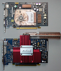 | ASUSTeK製のGeForce 6600 GTカード「Extreme N6600 GT」(上)とカード長を比較してみた。カードそのものの長さは同じだ |