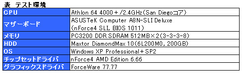 今回は同じASUSTeK製のGeForce 6600 GT搭載グラフィックスカード「Extreme N6600GT」(以下EN6600GT)と比較してみることにする。このほかテスト環境は表のとおりだ。