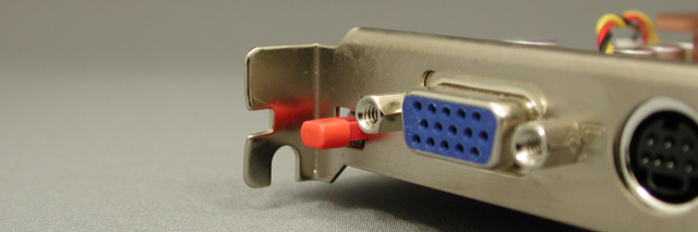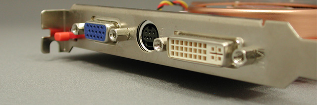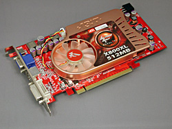| 出力インタフェースはD-Sub,DVI-I,S/コンポジットビデオ。グラフィックスメモリ512MB版Radeon X800 XLのリファレンスカードとは異なり,デュアルDVI-I仕様ではない | |