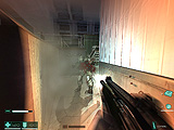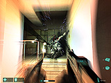 | ホラーもいいが,撃ち合いの迫力もすごい。Slo-Moを使えば,敵に銃弾がめり込んでいくのさえ分かるほどだ。リアルな銃声と飛び散るカートリッジが爽快感を盛り上げる。ただし敵AIは頭がよく,やつらの投げるグレネードは憎いほど狙いがいいので,ゲーム自体は簡単というわけではない |