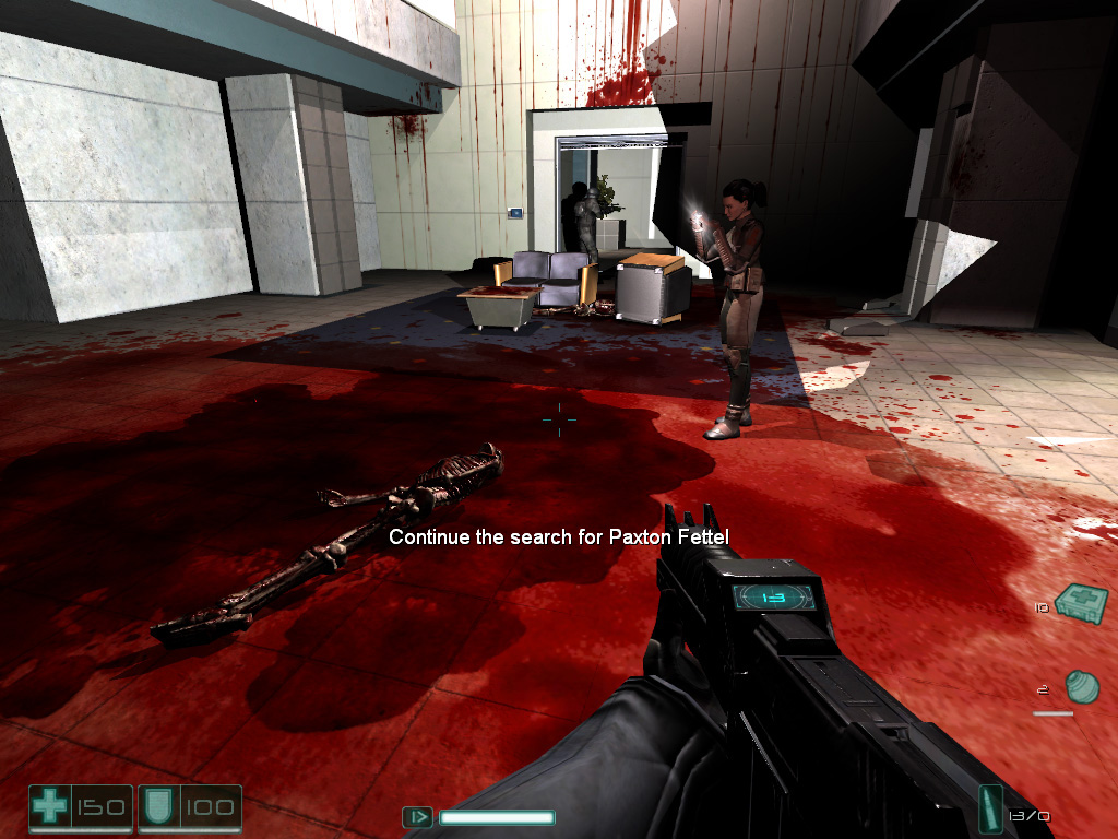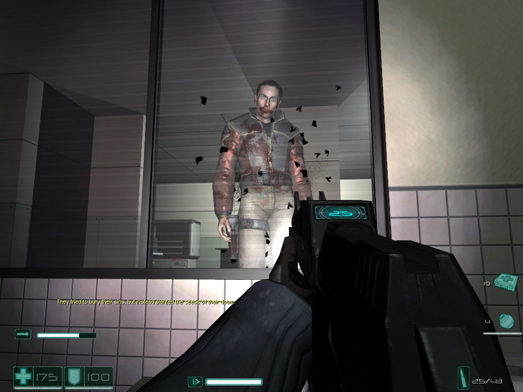 NOLFシリーズで見せたちょっとバカバカしいユーモアは,まあ当然ながら微塵もなく(お笑い担当っぽいNPCはいる),変われば変わるもんだな,という気がする。でも,そういえばNOLF2の南極基地のシーンもけっこう怖かったな。