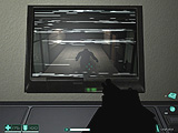 | 流血のおびただしさは折り紙つき。自分の血は苦手だが他人の血なら全然平気という筆者のような人なら大丈夫 | 登場人物はさほど多くないが,断片的な情報が得られるだけで,クライマックスまでストーリーはハッキリしない | 何気なく見上げたモニターに怪しい人影。この直後,さらにドッキリすることが起きるのだが,そういう演出が見事 |