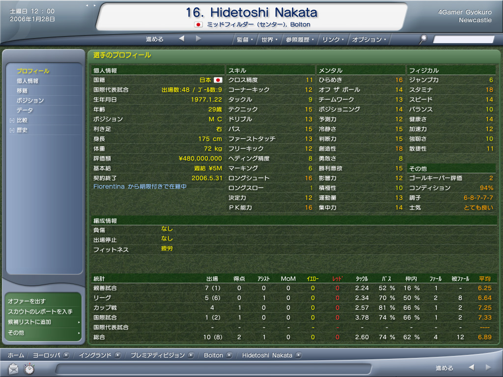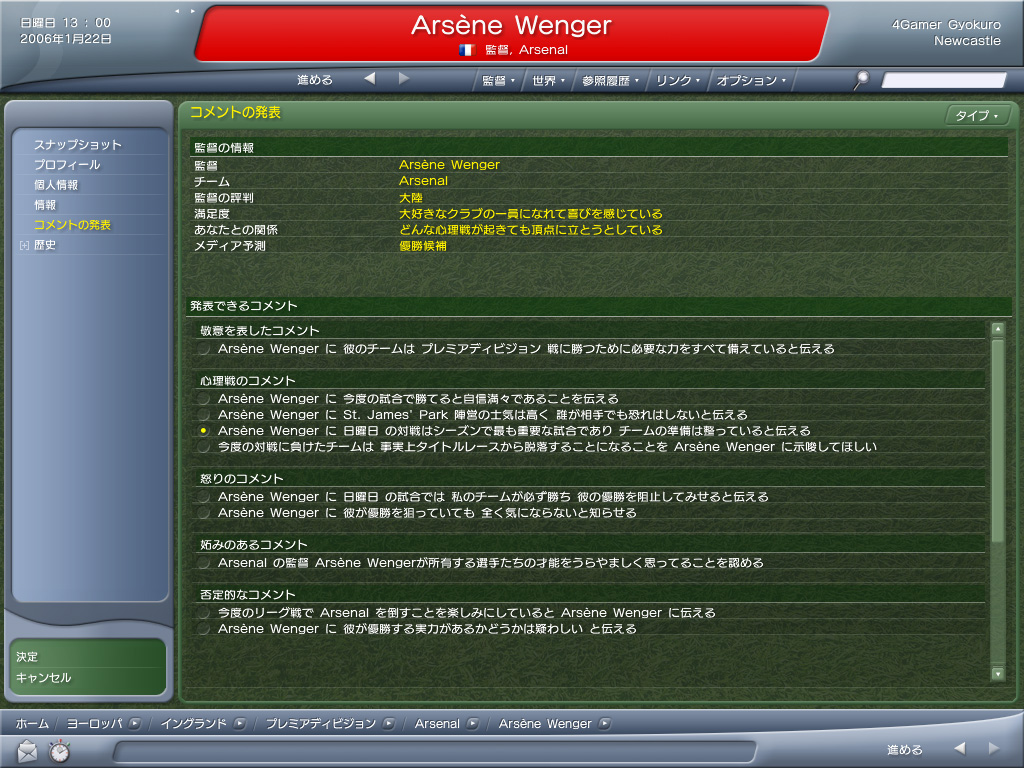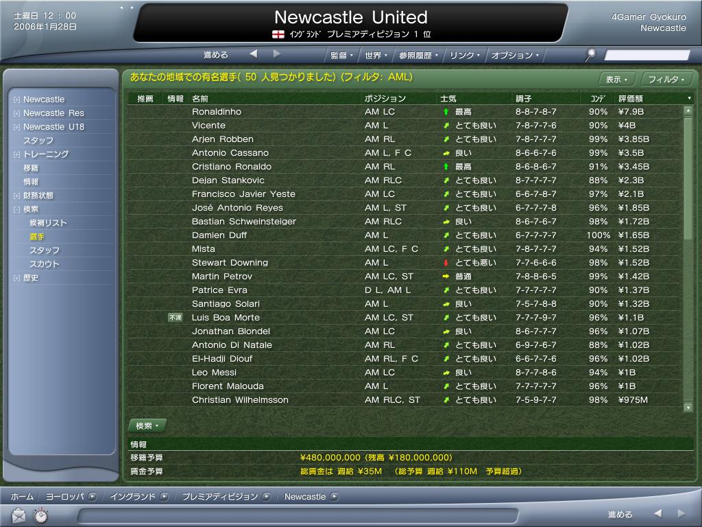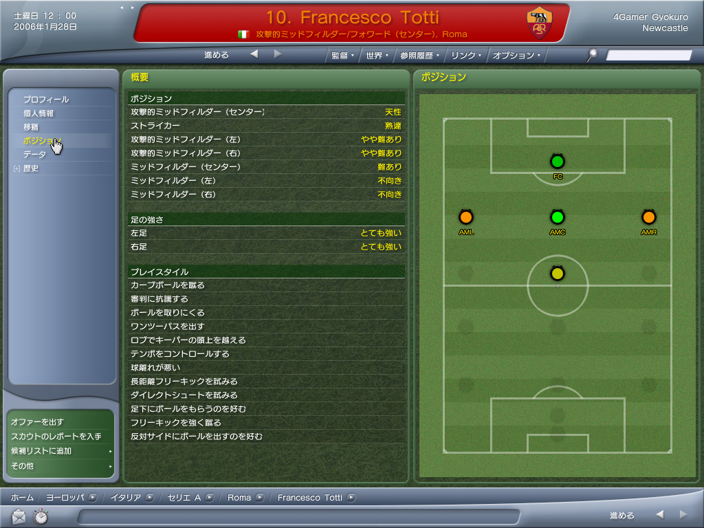 FM2006は非常に時間と手間のかかる作品だが,それを差し引いても,これらの感覚を楽しく感じられるような海外サッカーファンには,本作をオススメできるだろう。