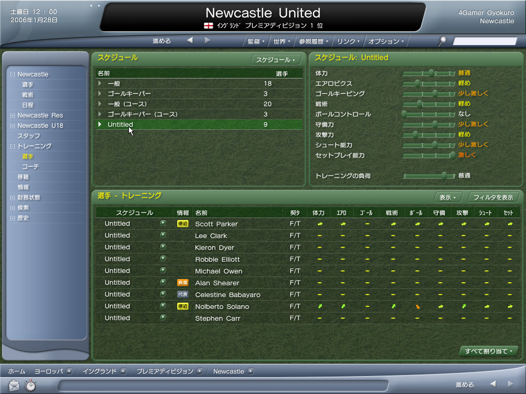 トレーニングと戦術は,画面左側のツリーメニューにあるそれぞれのメニューで作成する。