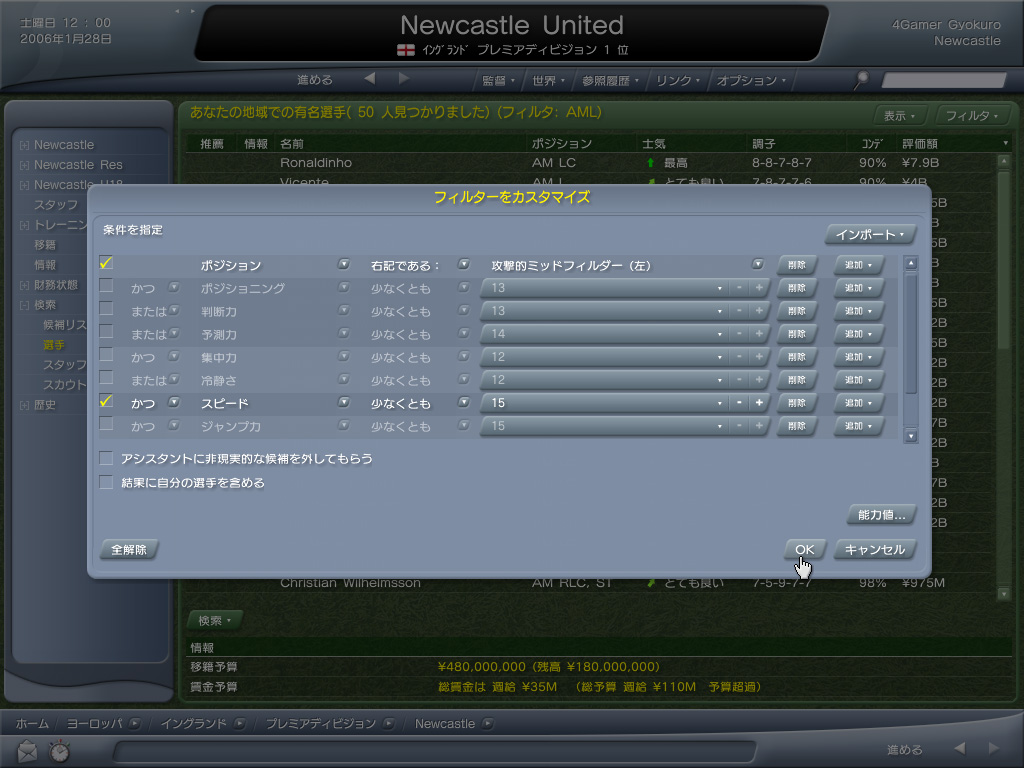 このように,理想の選手を獲得するには,候補をできるだけ広げて,獲得の可能性が高い選手を見つけ出すといった作業を,何度も繰り返して行うことがポイントになる。マメな作業にはなるが,世界に散らばっている選手を段々と把握して,20万人以上も存在する選手の中から理想の選手を見つけ出していく感覚は,どことなく宝探しに似ていて意外と楽しいものだ。