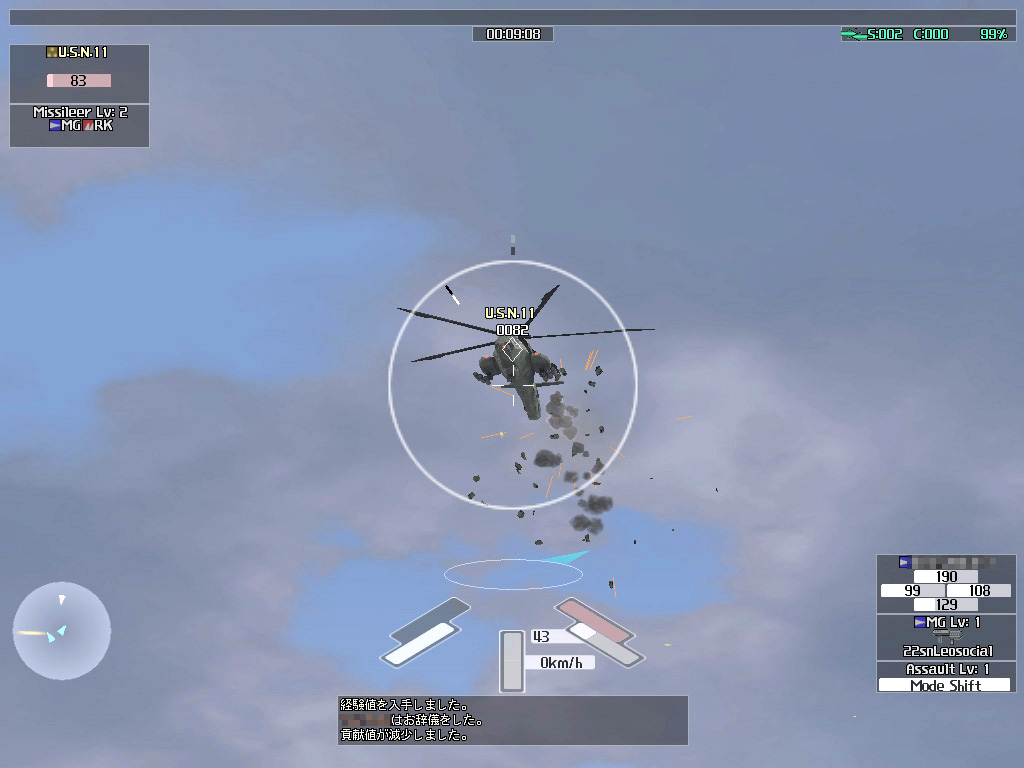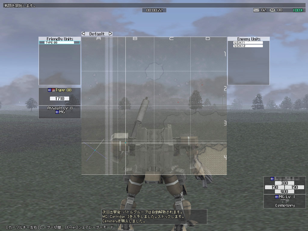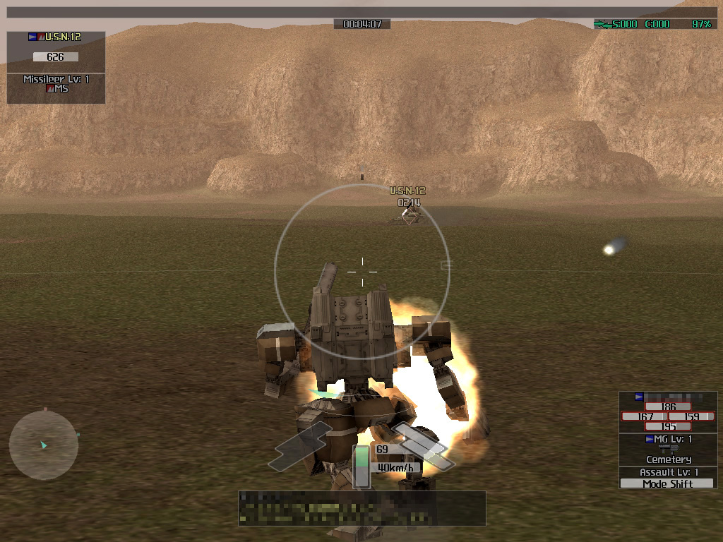 ちなみに,初心者用の戦闘マップでも,少し上のレベルになると,誘導式のミサイルを積んだ戦車や戦闘ヘリが出てくるようになる。とくに,戦闘ヘリが発射してくる誘導ミサイルの回避は難しく(建物などの陰に隠れても,上方から急角度でホーミングしてきたりする),中途半端な機動力では回避できない。