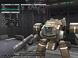 | 自機のヴァンツァーをセットアップする,ハンガーでの画面。パーツを試しに替えて性能の変化などをチェックしよう | ロビーの様子。昼間は少なめだが,夜は結構混む。入口付近はラグが発生するが,離れればそれほどでもない | マップセレクター画面。エリア内の出撃したいセクターを選択する。最初は水色の0から |