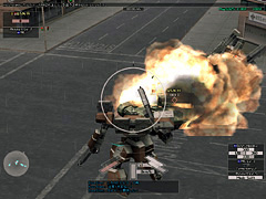 まずは対CPU戦だが,ここでは敵の強さが格段に変わってくる。ローラーダッシュを頻繁に使う高い機動性,それにも関わらずぶ厚い装甲,そしてガシガシこちらの装甲を削る強力な攻撃力。さらには,アサルトタイプのくせにジャマーのバックパックを装備していて誘導ミサイルが効かないなど,それはそれは強敵である。