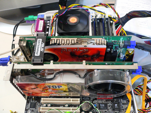 (2)に関しては,上のデュアルコア検証で利用したASUSTeK Computer製「ASUSTek Extreme N7800GTX TOP/2DHTV」(以下EN7800GTX)と,AOpen製「Aeolus PCX7800GTX-DVD256」(以下PCX7800GTX)を用意して,検証してみることにした。EN7800GTXはオーバークロック版,一方PCX7800GTXはリファレンスクロックで動作するので,「メーカーも動作クロックも異なる2枚のGeForce 7800 GTXカードによるSLI」のテストとなるわけだ。