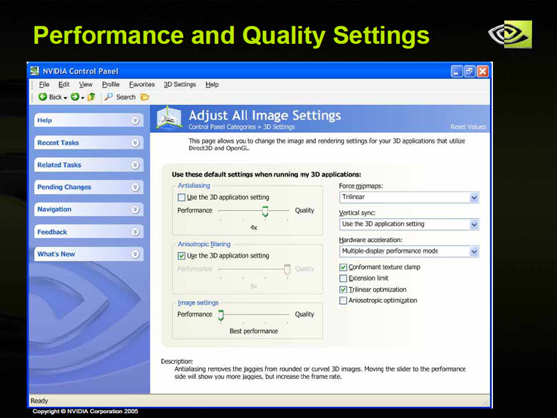 2005年9月14日のプレスカンファレンス,そして,その後の取材で明らかになったRelease 80世代ForceWareの機能は,デュアルコアCPU対応以外だと主に以下のようなものが挙げられる。