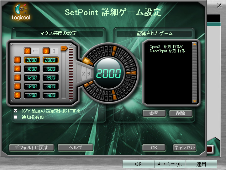 マウスの感度設定項目も充実している。SetPointからチェスの駒のようなアイコンが描かれたタブをクリックすると「マウスのゲーム設定」を設定可能だ。さらに,このタブの右下にある「詳細ゲーム設定」をクリックすると,ずいぶんと印象の異なった,マウス感度の設定専用ウインドウが立ち上がる。