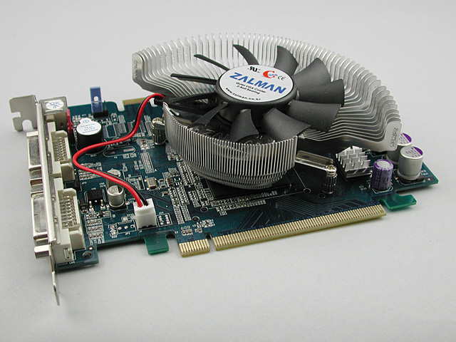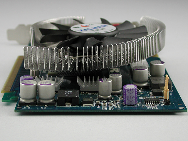 また,注目したいのは,外観上の特徴となっているチップクーラーだ。これは冷却能力で定評のあるZalman Tech製GPUクーラー,VF700シリーズのカスタム品。フルアルミのフィンと,負荷によって回転数の変わるファンが一体型になっている。製品版のVF-700シリーズは,互換性への配慮などから,専用の固定用金具を利用してカードに固定する必要があり,それが“出っ張り”となって,特定のマザーボードと干渉する場合があるのに対し,GF 7600GS-Zのそれはカスタム品なので,そういった心配はない。