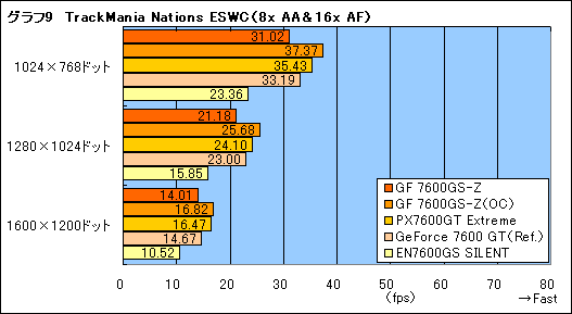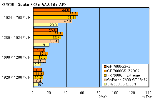 MMORPGでは,レースゲーム以上に,数fps程度の差が体感レベルの違いになることは少ない。だが,読者の多くが実際にプレイする現実的な解像度である,1024×768ドット,あるいは1280×1024ドットにおいて,GF 7600GS-ZがGeForce 7600 GSのリファレンスクロック動作(=EN7600GS SILENT)を大きく上回っている点は,評価していい。