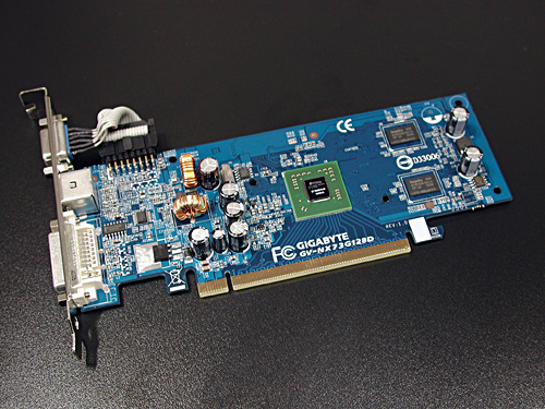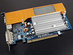 さて,今回入手したのは,GIGABYTE TECHNOLOGY製の「GV-NX73G128D」。Low Profile風のカードに,大型のヒートシンクを搭載することで,ファンレス動作を実現したPCI Express x16接続製品だ。