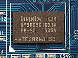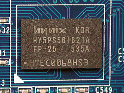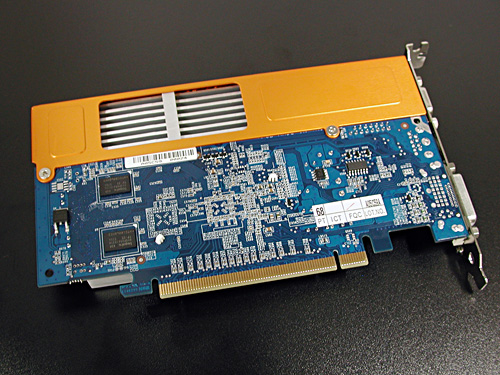 グラフィックスメモリには,Hynix Semiconductor製のDDR2 SDRAMである「HY5PS561621A FP-25」をカードの両面に2個ずつ搭載。ForceWareから調べたところ,メモリクロックは810MHz相当(405MHz DDR)だった。