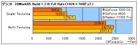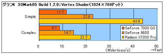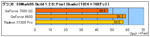 グラフ2〜4は,テストの詳細を見たものだが,全体的に,GeForce 7300 GSはGeForce 6600よりも一歩劣る内容になっている。