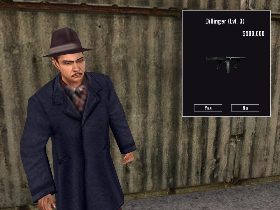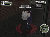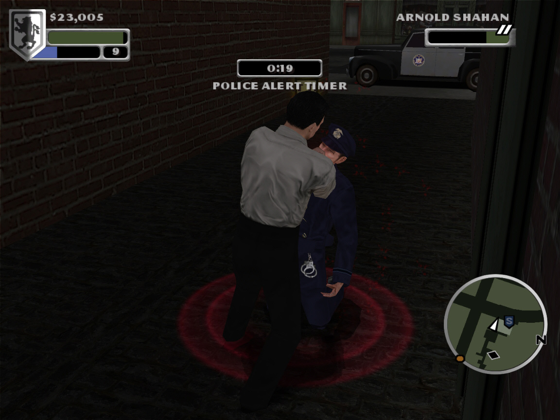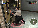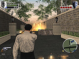 ゲームで使用できる武器は10種類で,警棒やバットなどの打撃系,ギャロットという背後から首を絞めるための鉄線のほか,複数のピストルやショットガン,サブマシンガン,ダイナマイト,火炎ビンなど多士済々。武器を使用するにはHキー(デフォルト)を押す必要があるが,背後から攻撃してきた敵に応戦しようと武器を取り出したところギャロットだった,というようなこともあり,注意してないと,体力を大きく削がれてしまうことになる。敵弾の命中率を下げるためにしゃがみ込んだり,あらかじめ相応の武器を取り出せるようにいちいち確認しておかなければならないのが,少々面倒臭く感じる部分だ。また,相手だってプレイヤーを一撃必殺できるので,通路から部屋に入った瞬間に殺されてしまうような場面にも遭遇した。