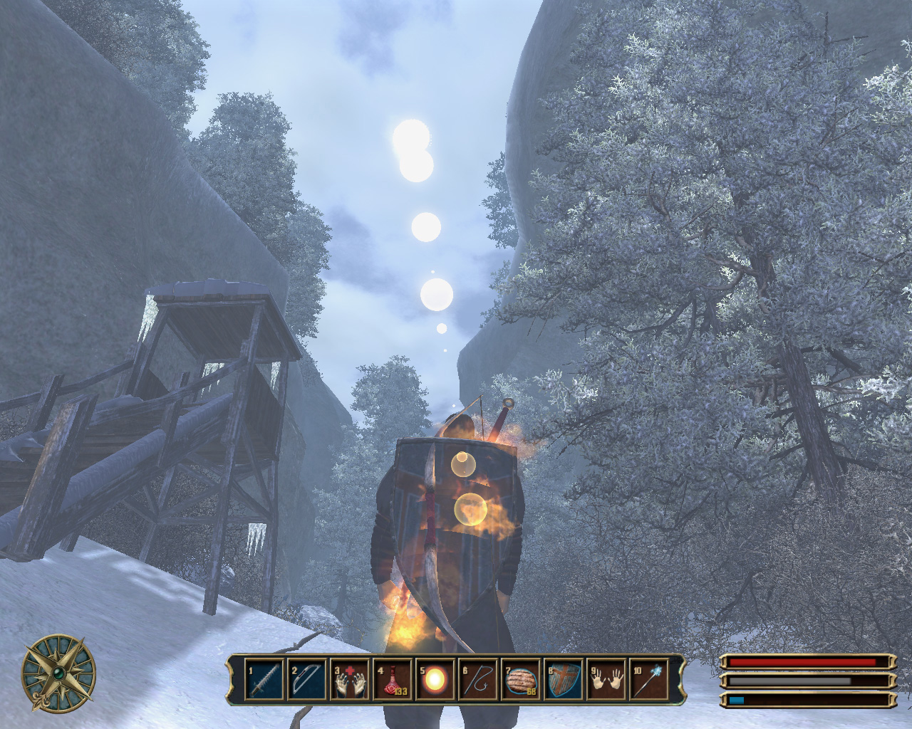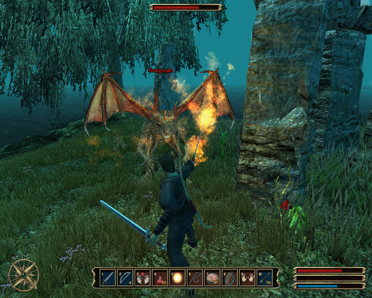 こういった点から,Gothic3の戦闘は少なからずストレスが溜まる。とはいえ,ゲームに慣れて次第にコツをつかんでくると,これら「あぁ,もう!」感が逆に楽しく思えてくるから不思議だ。不満は多いが,それをしのぐ妙な緊張感と変な熱さを持った戦闘なのだ。まあ,少なくともターゲットを固定する方法ぐらいは欲しいものだが……。