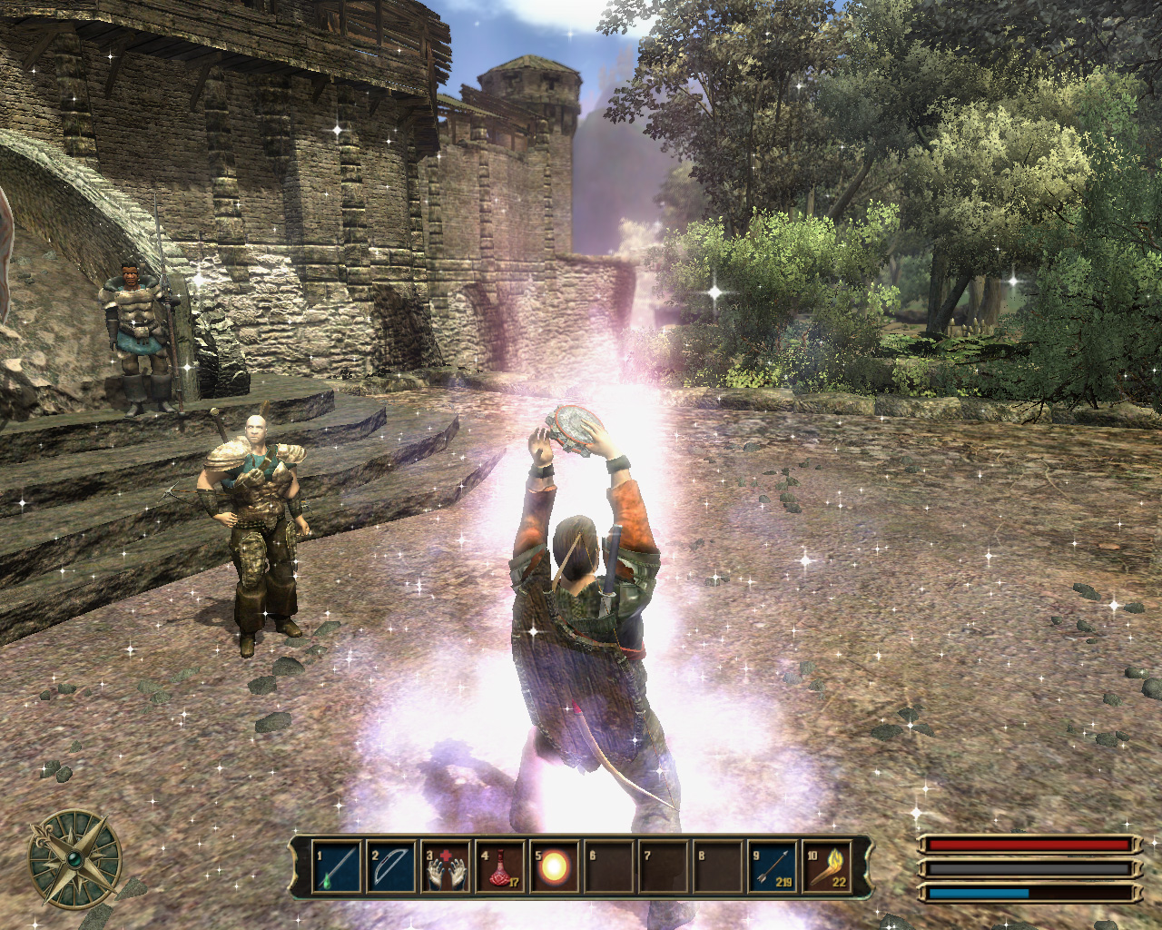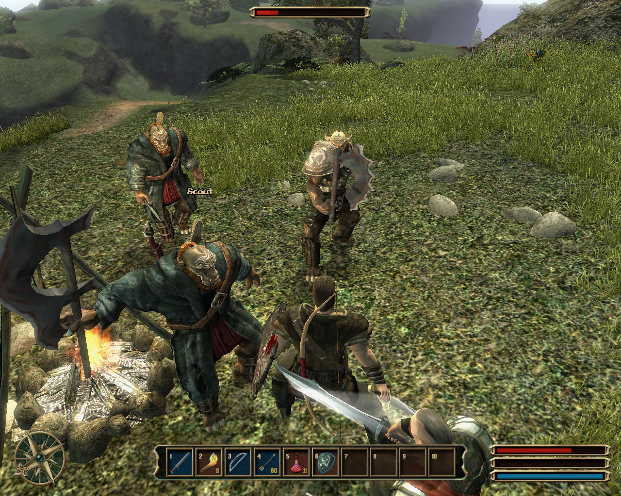 ここはまぁ,目の前で起こっている事件なので,ほぼ強制的にオークと戦わなくてはならないわけだが,その実,Gothic3に決まったプレイ方法は存在しないのである。