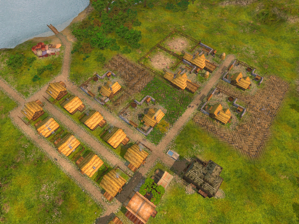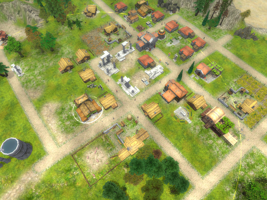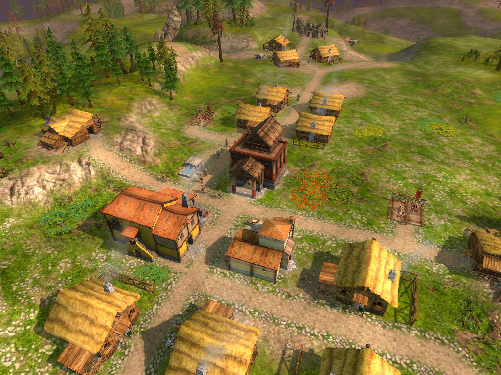 ゲームはまず,新しい建物を建てるための木と石を得ることから始まる。森の近くに木こり場を建設し,その近くに住居を建設する。すると新しい夫婦が住居に移住してきて,男性が木こり場で働き始めるだろう。同様に岩塊の近くには,石切り場と住居を建設する。