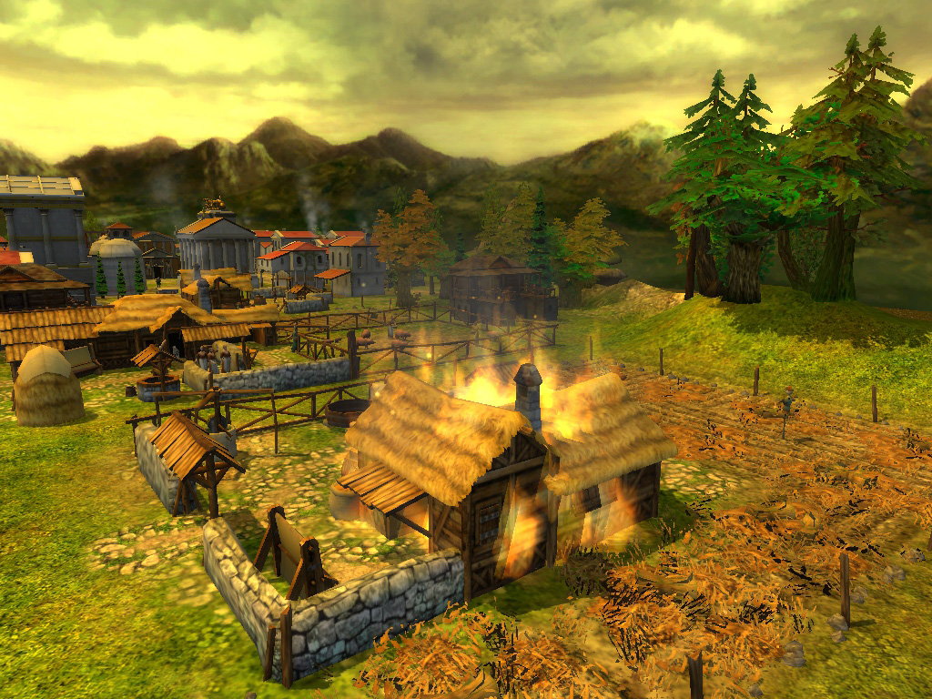 建物の建設位置を指定したら,あとは見ているだけで,それ以外にプレイヤーが関与する要素といったら,寺院に金を寄付するかのオン/オフや,兵士に攻撃を指示するかのオン/オフ(実際の軍事行動もAIが行う)といった程度で,シミュレーションゲームによくありがちなスライダーの調整とか,数値をいじる類の操作は一切ない。火事が起きても,役人が消火してくれるのをじっと待っていればよい。操作量はかなり少なくて済むので,まったりとプレイするにはかなり適したゲームだ。