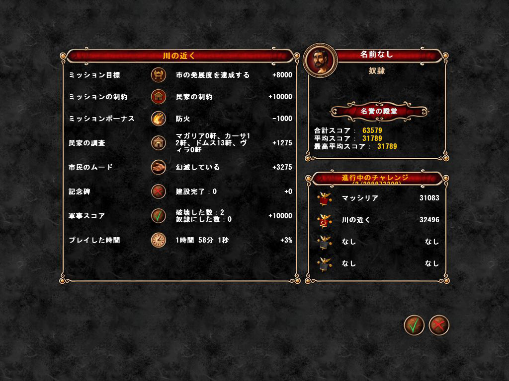 チャレンジモードは,ランダムな4ミッションを特定の条件でプレイして,その最終的な合計スコアを競うもの。スコアは都市の発展度,市民の感情,記念碑の数,クリアまでに要した時間などで総合的に計られる。このスコアはインターネットを通じて公式サイトへ自動的にアップロードできる。本作にはマルチプレイはないが,このスコアを競うのが,ほかのプレイヤーとの接点になる。
