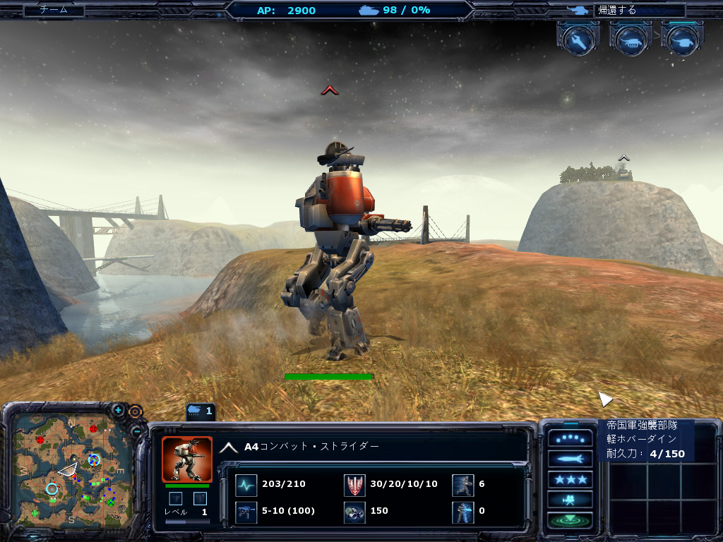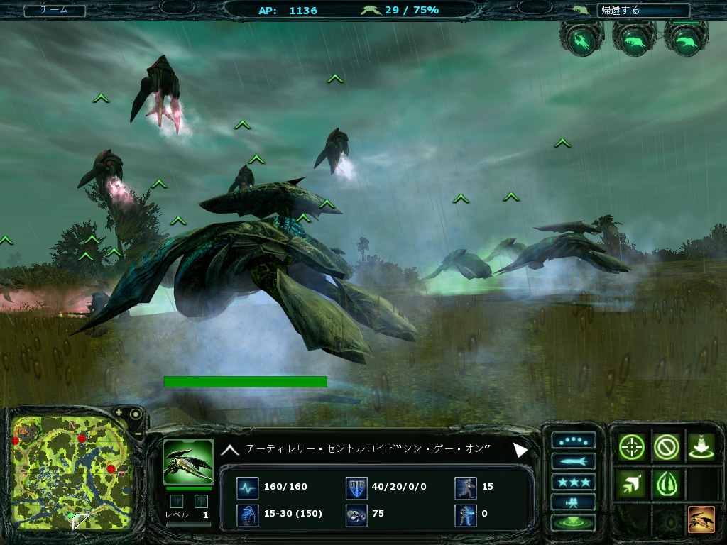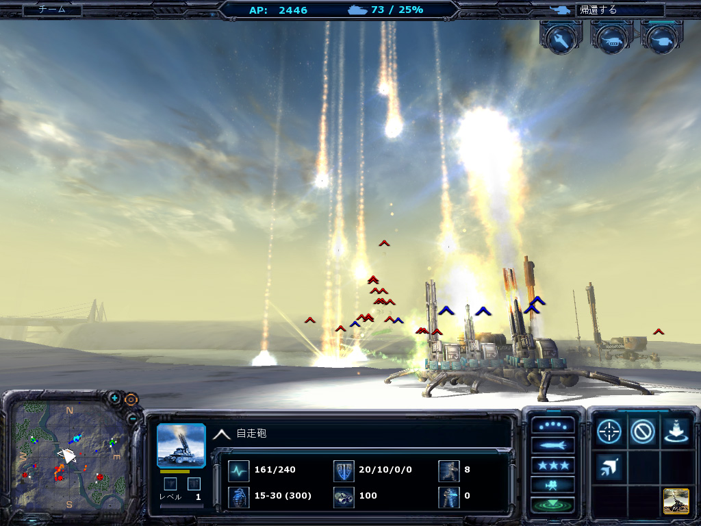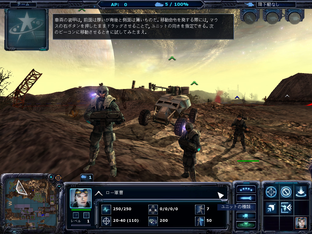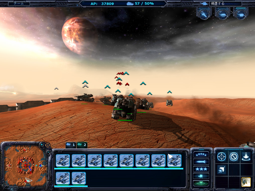 | ユニットの増援はすべてこのドロップシップを使って行う。ただし,ユニットの増援には「AP」が必要なので,これをいかにして効率よく稼ぐかがポイントだ。APは拠点を制圧するか,敵ユニットを破壊すると獲得できる |