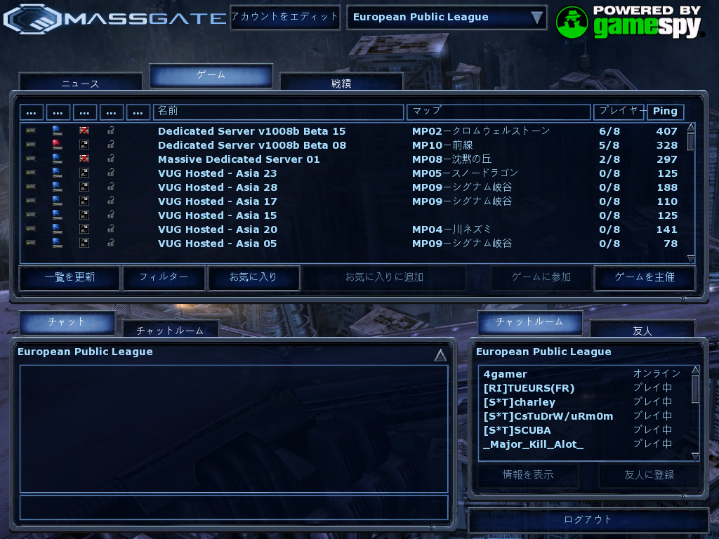 ゲームモードは,ストーリーを進めていく「キャンペーン」を始め,コンピュータやほかのプレイヤーと対戦できる「共同戦線」「小戦闘」などが用意されている。ネットワーク対戦は最大8人で,専用ロビー(Massgate)にアクセスすれば相手はいつでも見つけられる。