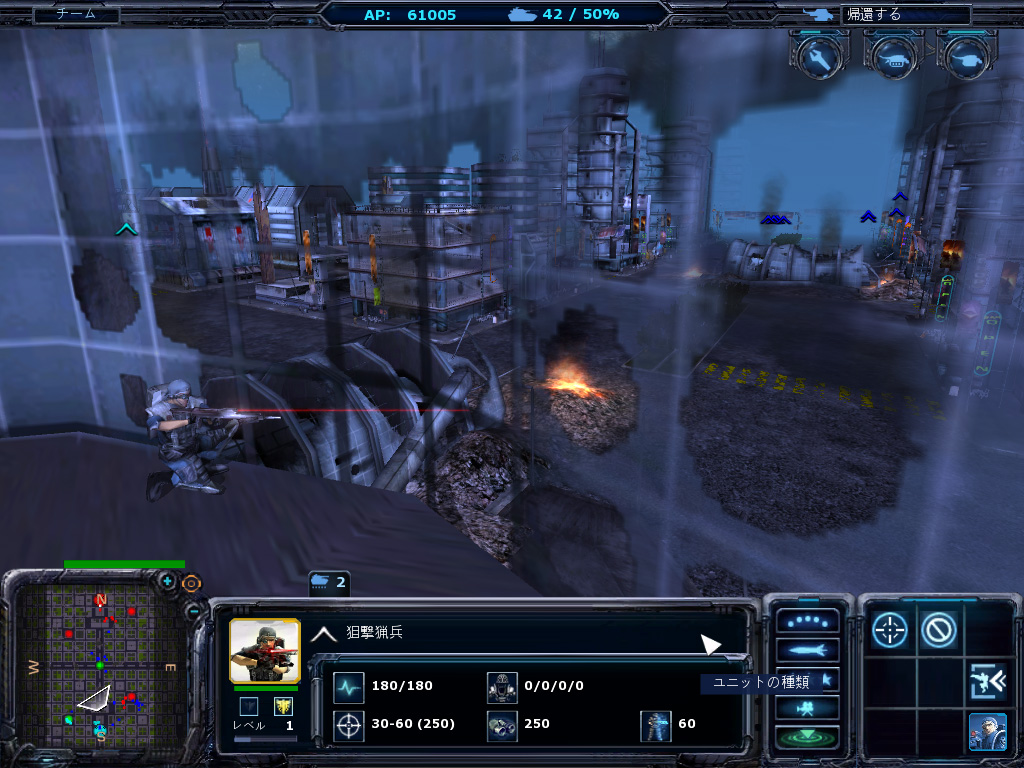 また,ほとんどのユニットには「セカンダリモード」と呼ばれるスペシャル形態があり,この使い分けが重要になる。例えばNSAの軽歩兵はライフルで武装しているが,ライフルで装甲車両を倒すのは難しい。しかし,セカンダリモードにすると武器がミサイルランチャーに切り替わり,面白いように装甲車両を破壊できるユニットと化すのだ。