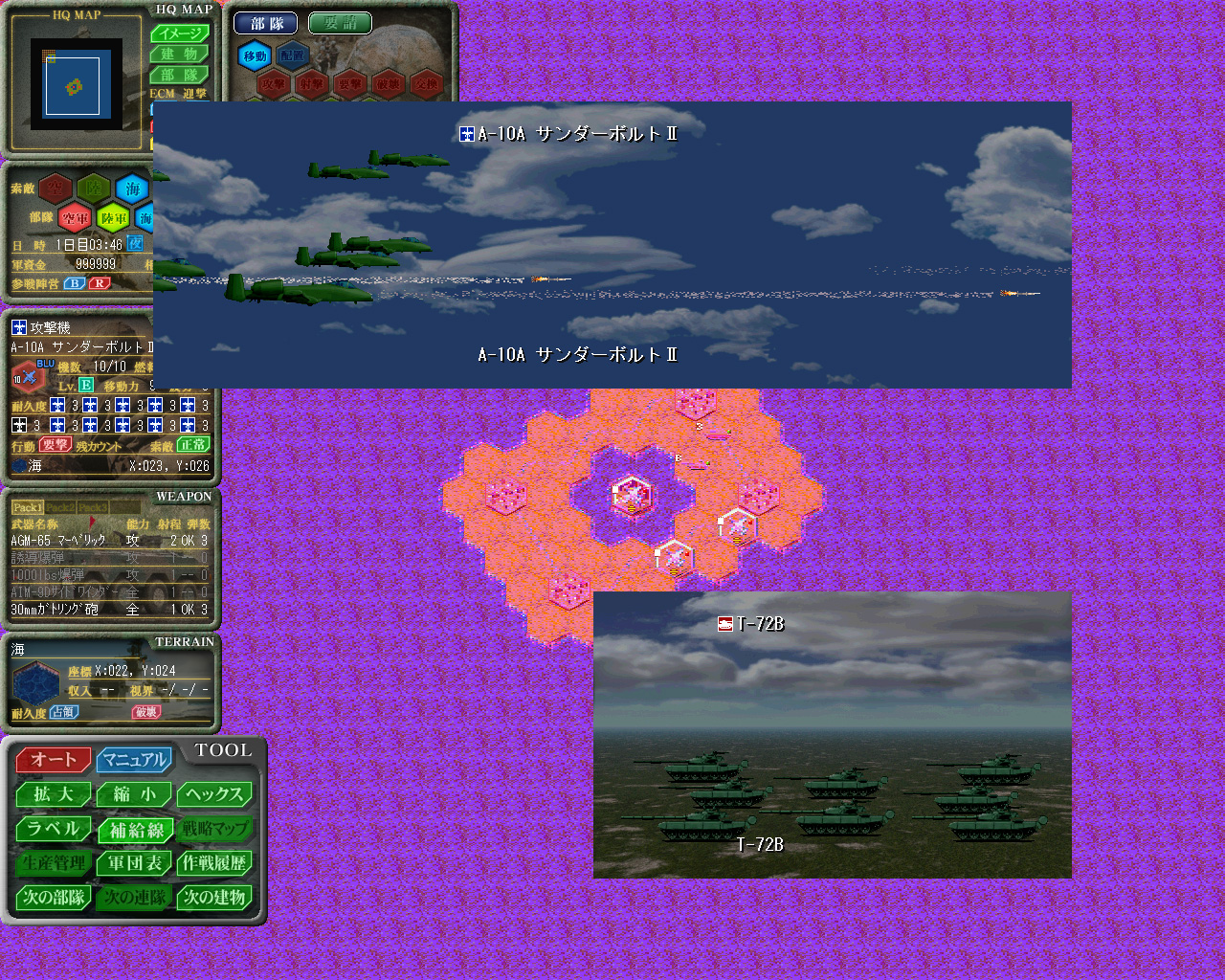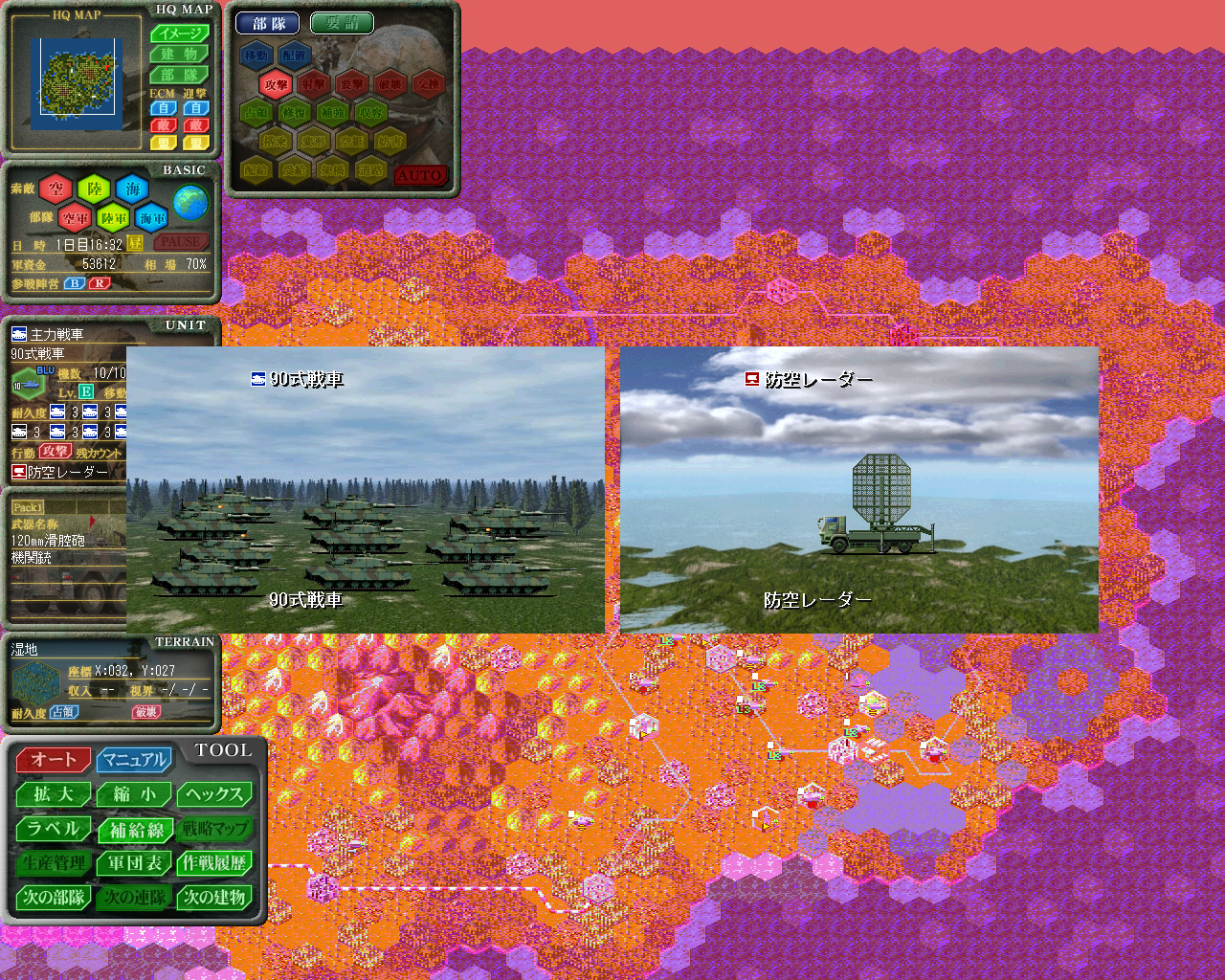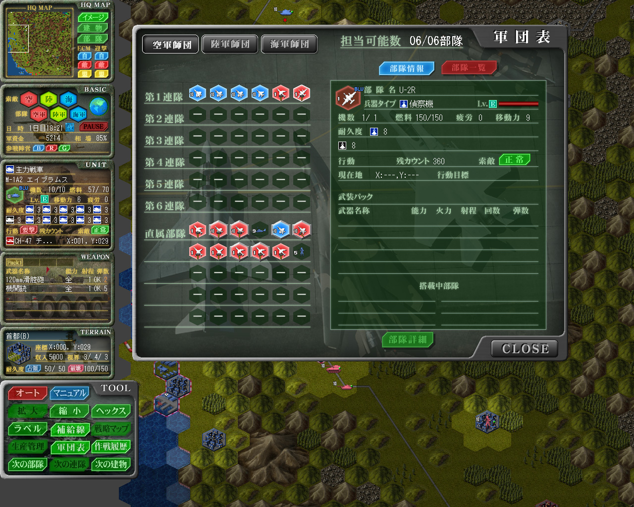 というわけで,例えば部隊長の間は,歩兵や輸送ユニット,戦闘ユニットをバランスよく整備することはあまり考えなくてもよい。マップの構造(地形配置)にもよるが,戦車や戦闘機など,戦闘力が高い部隊をメインにして,無難にレベルアップを図るのも一つの方法なのだ。