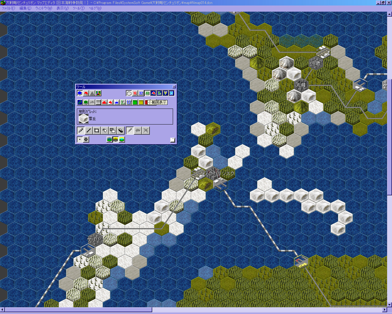 | 兵器ユニット=部隊には,名前も付けられる。ポイントを消費して新規購入も可能だ | マップエディタも収録。オリジナルマップではコンピュータプレイヤーの侵攻目標も設定可能 | 補給可能な建物や地形を結んで形成される補給線の概念は,前作から引き継がれている |