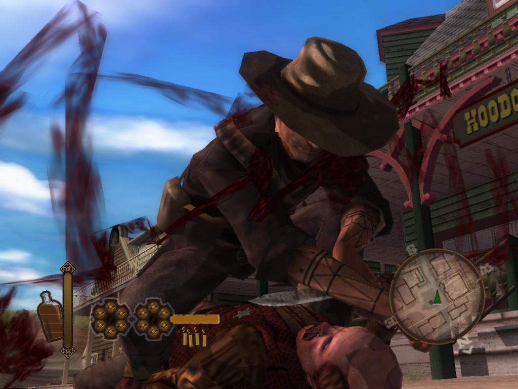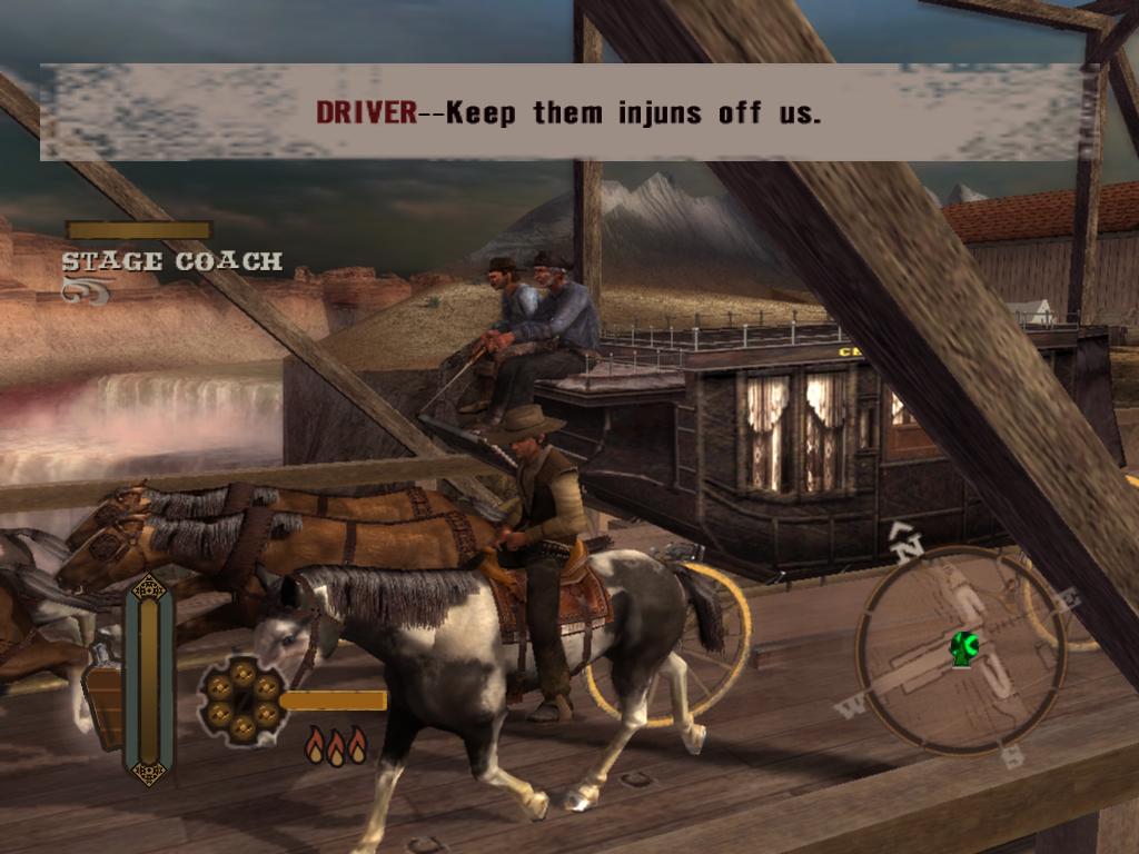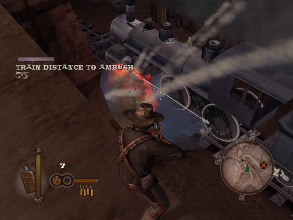 「まだ元気そうなのに,なぜNedは一緒に逃げなかったのか」という疑問はさておき,本作のゲームプレイは,登場キャラクターとの会話を挟んで西部の地を踏破する簡単なアクションフェイズに,銃撃による戦闘を主眼に置いたシューティングフェイズを散りばめた形で展開される。