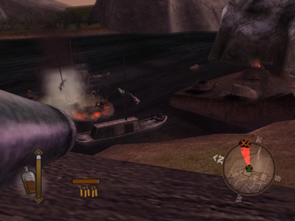 ただ,本作はプレイステーション2やXbox,Xbox 360といった各コンシューマ版も存在するマルチプラットフォーム用の設計のためか,難度Normal程度では一般的なFPSのようにシビアな射撃精度が必要となることはない。体力回復アイテムのウイスキーをガブ飲みしつつ,軽いオートエイミングにサポートされながら敵に照準を合わせてドンパチ撃ち合うという,爽快感重視のプレイスタイルがとられている。