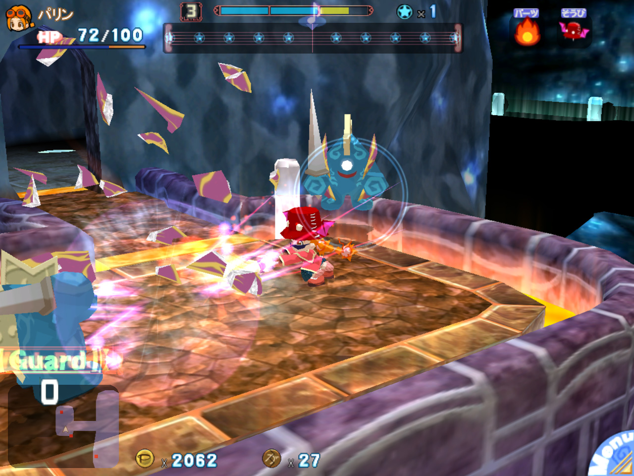 クリティカルアタックのほかにも,主人公の基本的な戦闘アクションとして「ガードダッシュ」や「浮かせ攻撃」「ターゲットアタック」というものがある。ガードダッシュは敵からの攻撃を避け,発動中はほぼ無敵の状態になる。浮かせ攻撃はボタン同時押しにより敵を浮かせ,そこにすかさずターゲットアタックで追撃するといった具合だ。