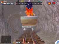 | トロッコに乗り,猛スピードで駆け抜ける! 途中の石ころはジャンプで切り抜けろ! |