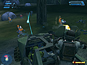 それから,これは人によっては不満になるかもしれない点。とにかくマップが広い。広大なステージを持つFPSとして知られる「アンリアル」シリーズや「TRIBES2」を凌駕している感じである。すべての面に乗り物があるわけではないので,徒歩での長距離移動にストレスを感じる人がいるかもしれない。もう少し乗り物があってもいいのでは?